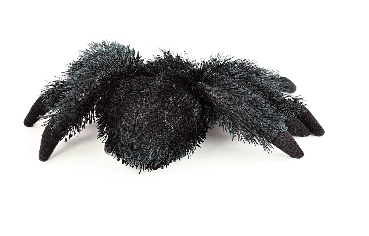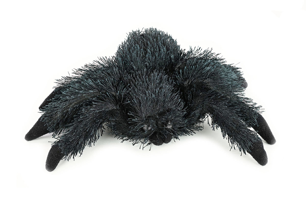 Eine schwarze Plüsch-Tarantel aus weichem Plüsch, sehr realistisches Design als besonderer Blickfang.
