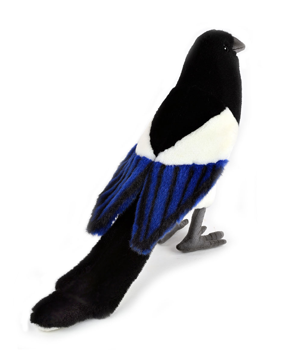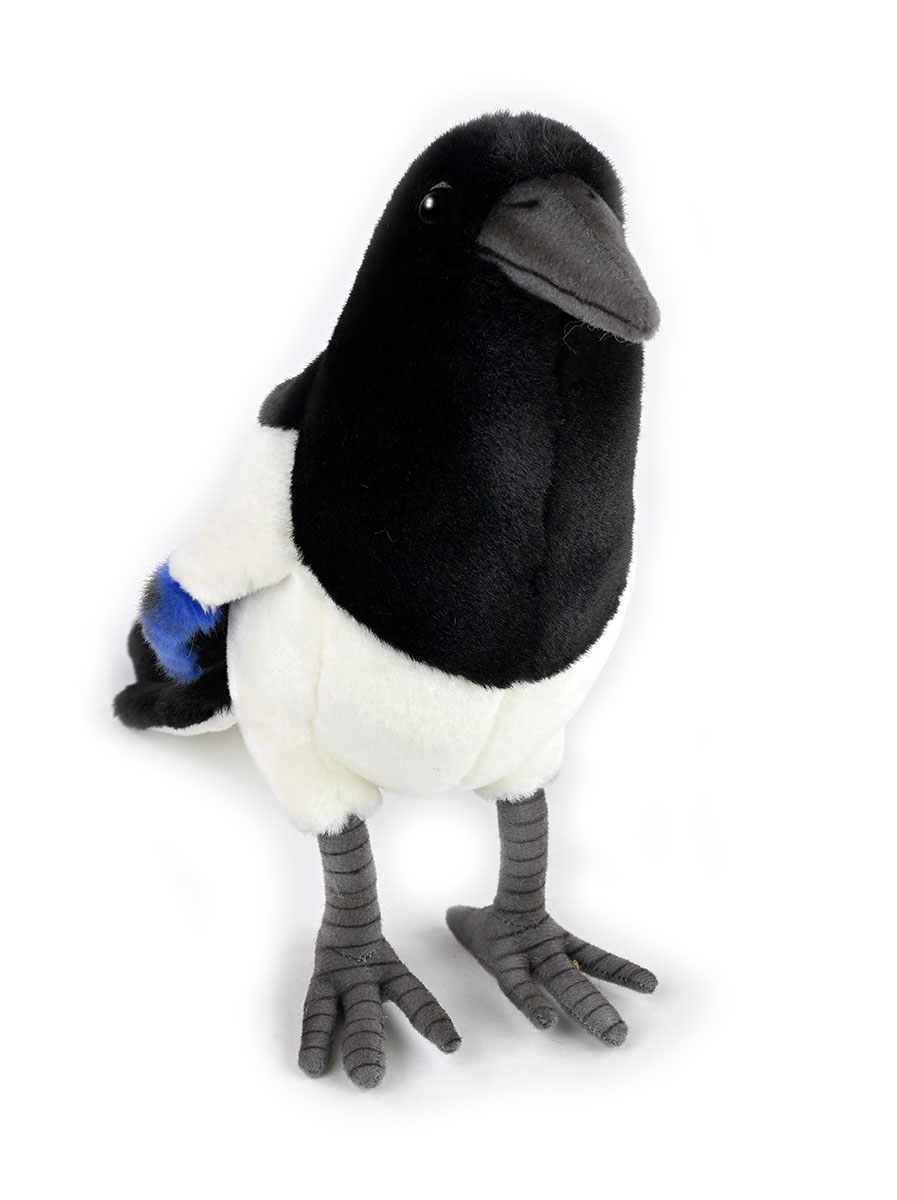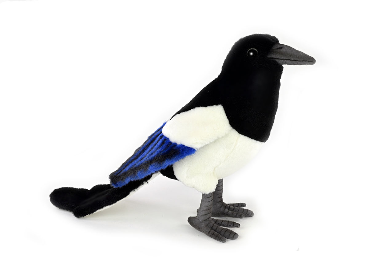 Diese Elster der Firma Hansa ist ein naturgetreu gestaltetes Stofftier, handgefertigt mit Liebe zum Detail,